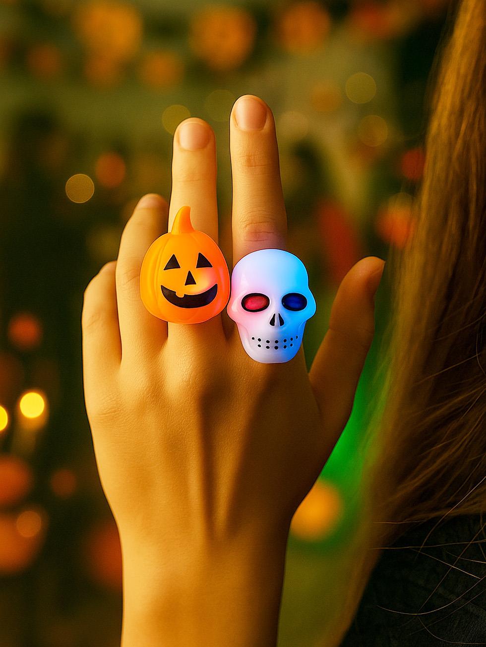Cadılar Bayramı Kuru Kafa Bal Kabağı Işıklı Yüzük 2'li