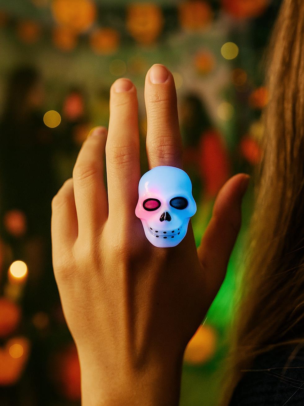 Cadılar Bayramı Kuru Kafa Işıklı Yüzük Halloween Parti Aksesuarı