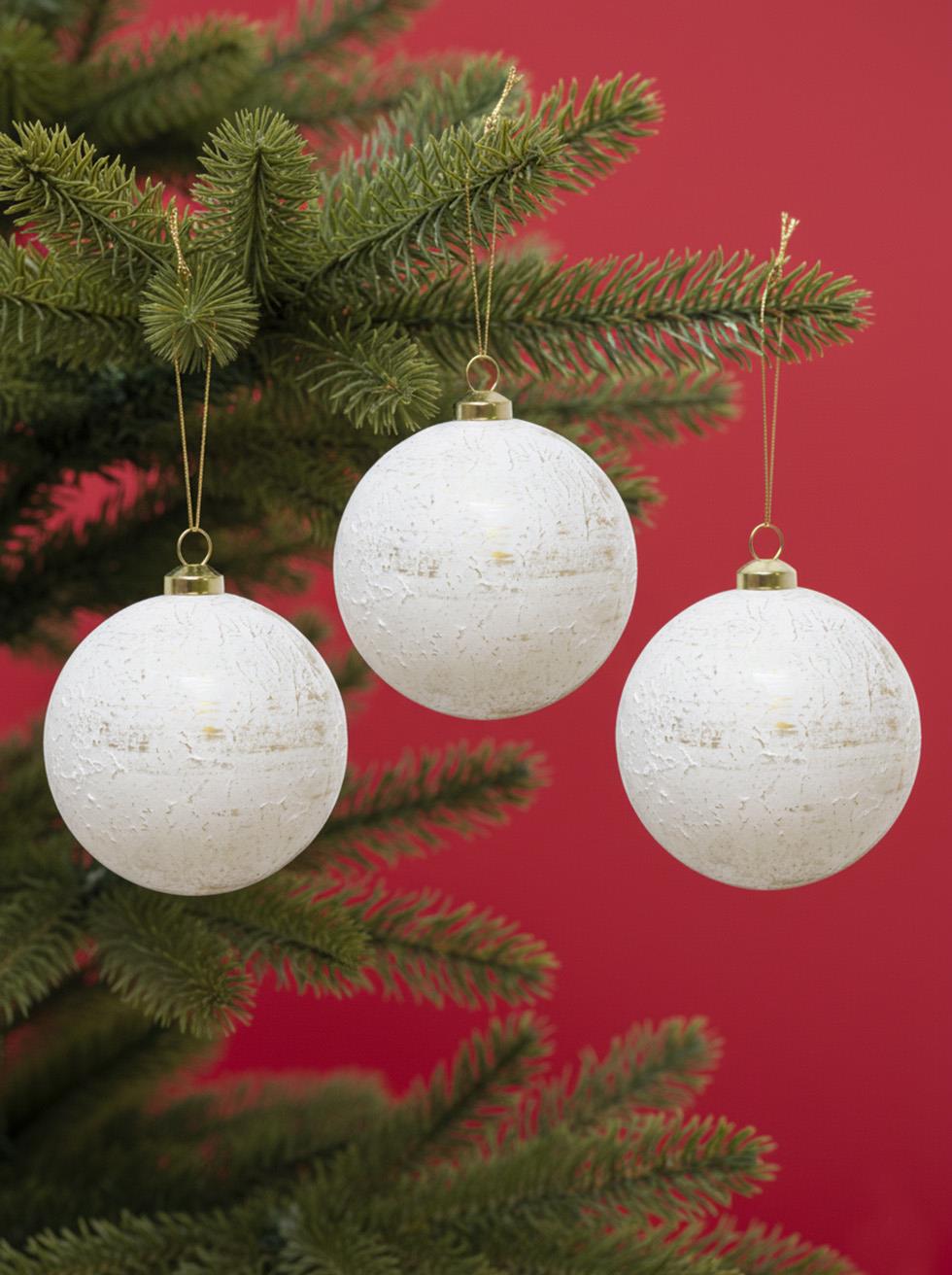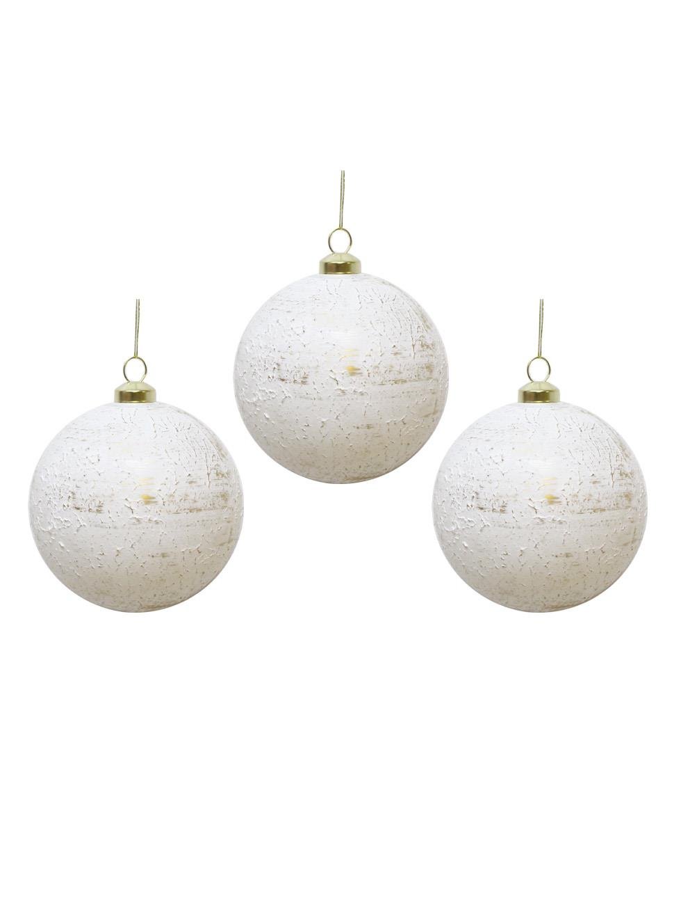 Eskitme Görünümlü Retro Yılbaşı Topu Beyaz Gold