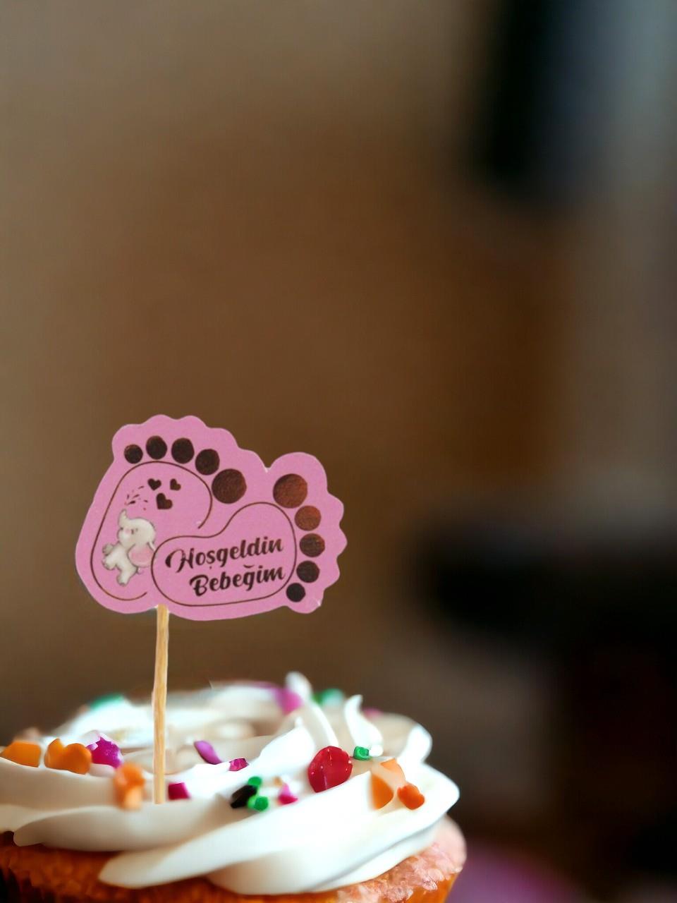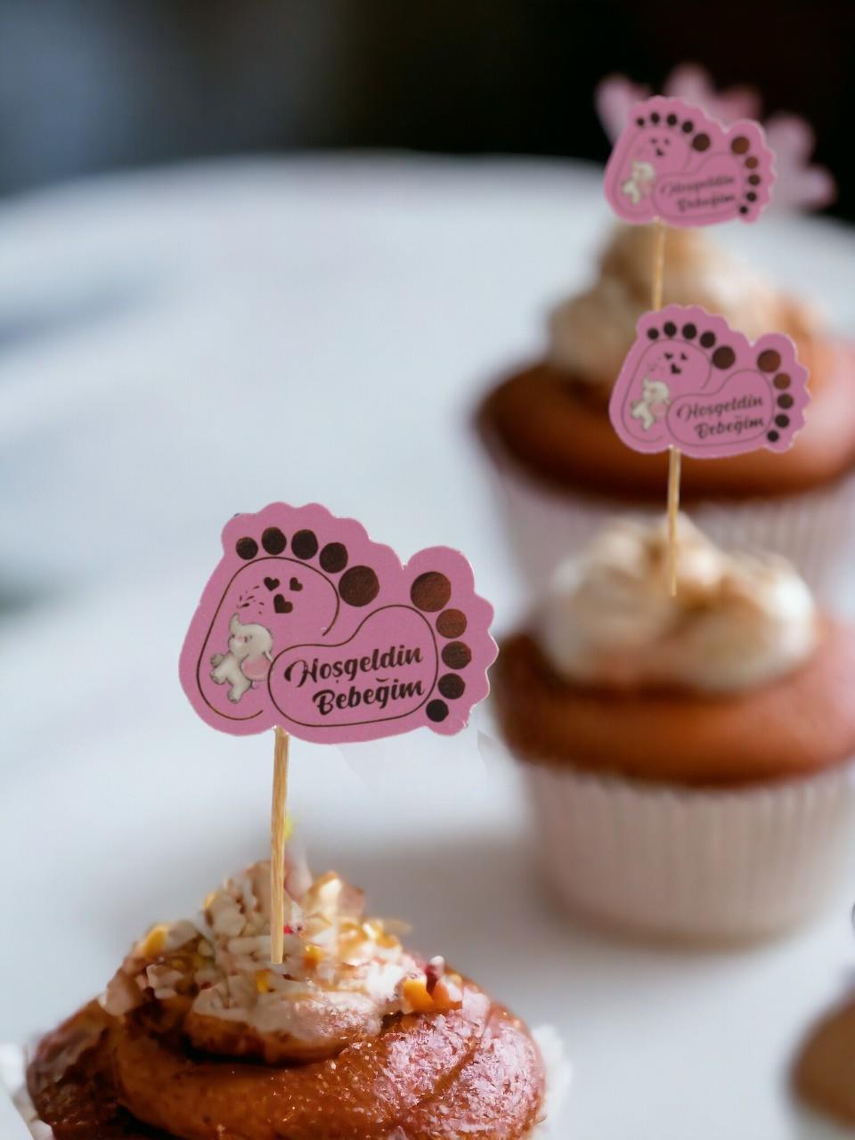 Hoşgeldin Bebeğim Kürdan Cupcake Kürdanı Pasta Süsü Pembe