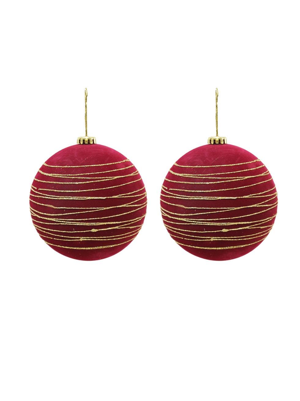 Kadife Yılbaşı Topu – Altın Simli Çam Ağacı Süsü Bordo