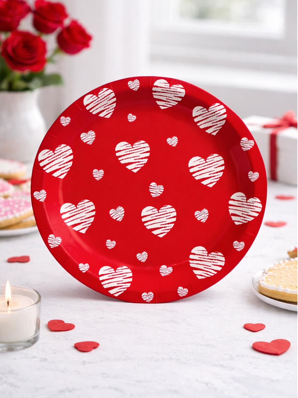 Kalp Baskılı Tabak Love Karton Tabak Kırmızı
