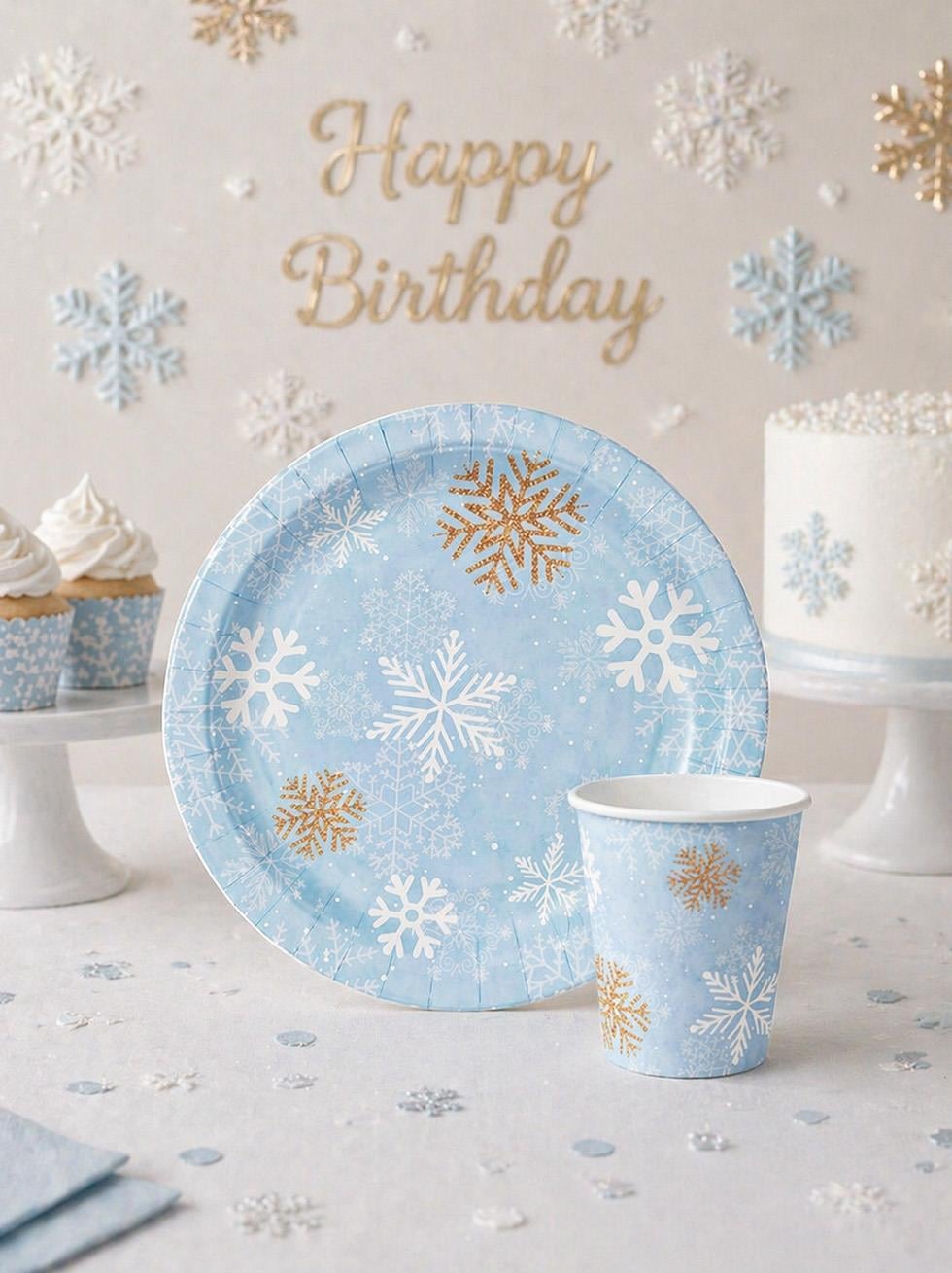 Kar Tanesi Temalı Tabak Karton Doğum Günü Tabağı