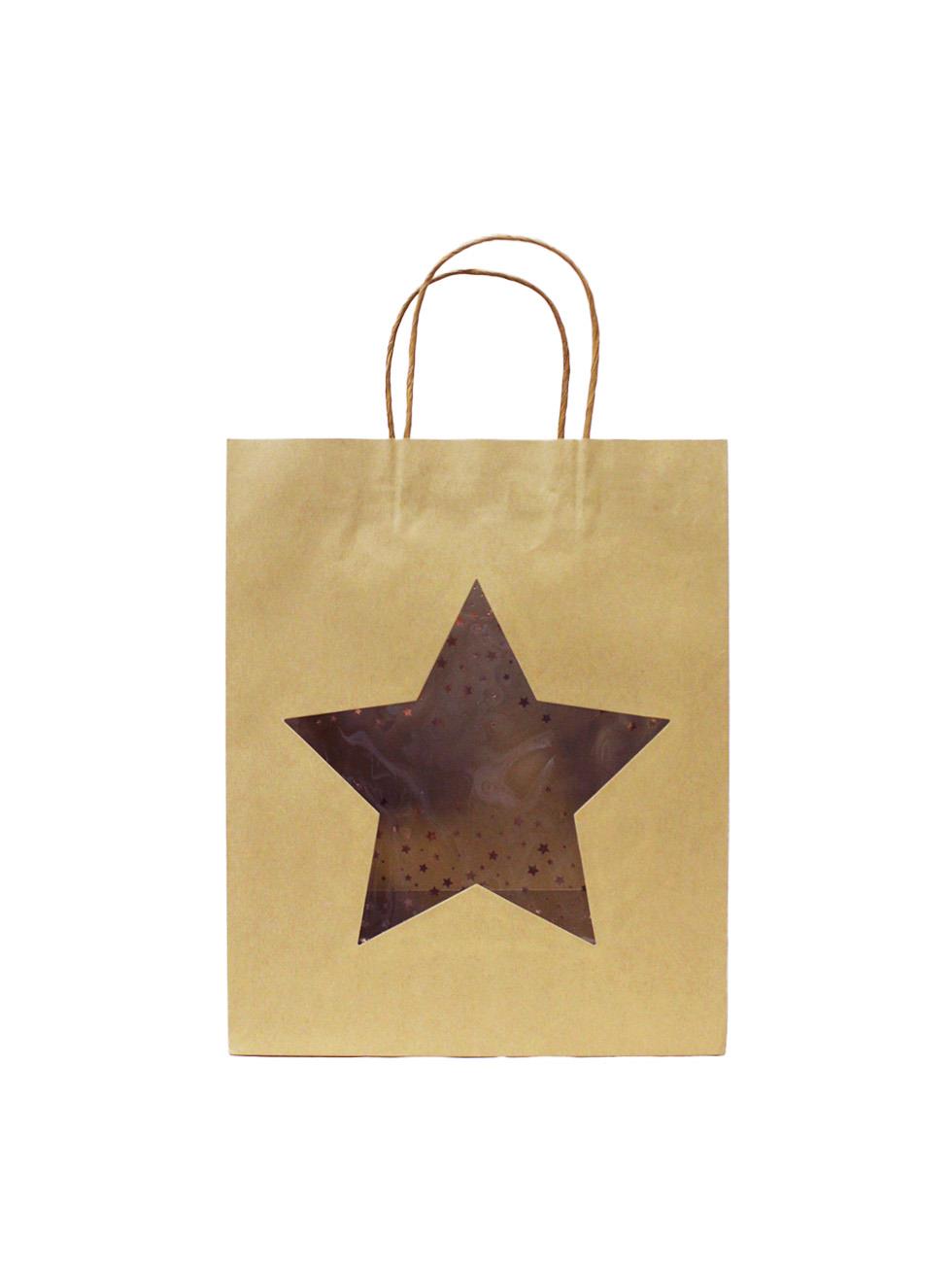 Karton Çanta Yıldız Pencereli Alışveriş Çantası Hediye Çantası Kraft