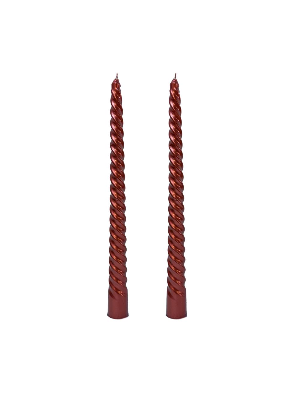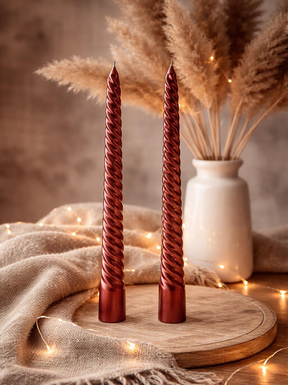 Metalik Kırmızı Spiral Şamdan Mum – Dekoratif Masa Dekoru