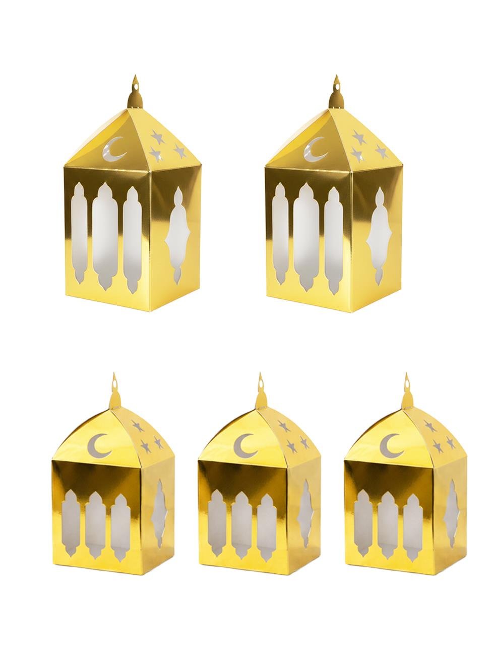 Paket içerisinde 2 adet büyük, 3 adet küçük Ramazan kandil figürlü kağıt süs bulunmaktadır.