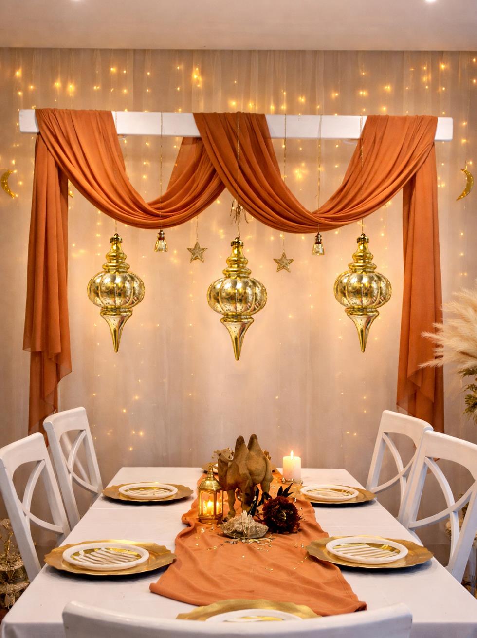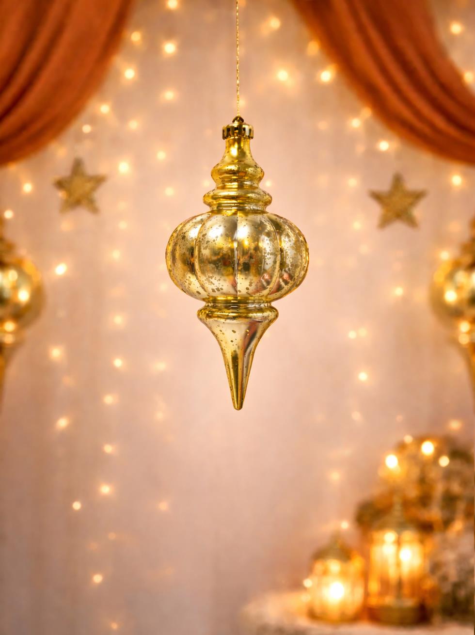 Ramazan ayının zarif ve huzur veren atmosferini yaşam alanlarınıza taşıyan Altın Ramazan Sarkıt Süs,şık formu ve ışıltılı yüzeyiyle dekorasyonunuza sofistike bir dokunuş katar.