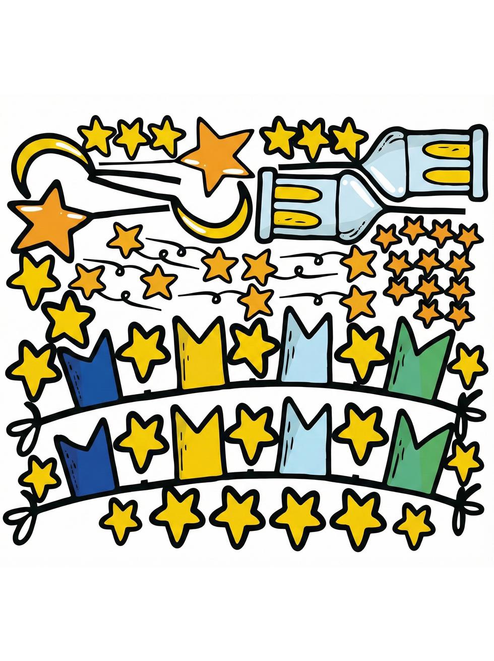 Yıldızlar ve tamamlayıcı Ramazan motifleri (farklı boyutlarda) bulunmaktadır.