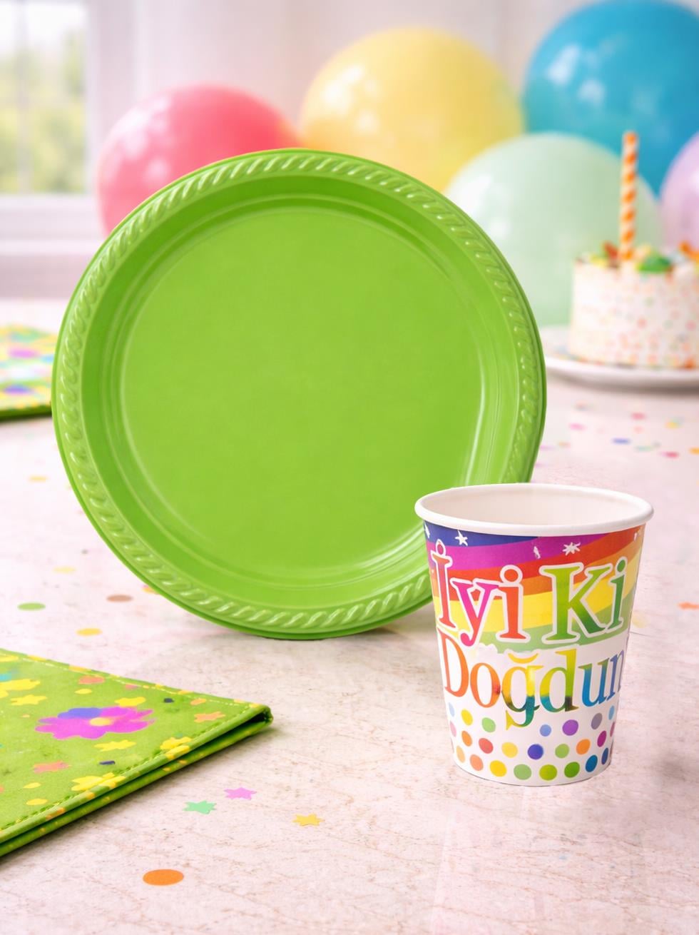 Yeşil Plastik Tabak & Karton Bardak Seti – Doğum Günü Parti Malzemesi