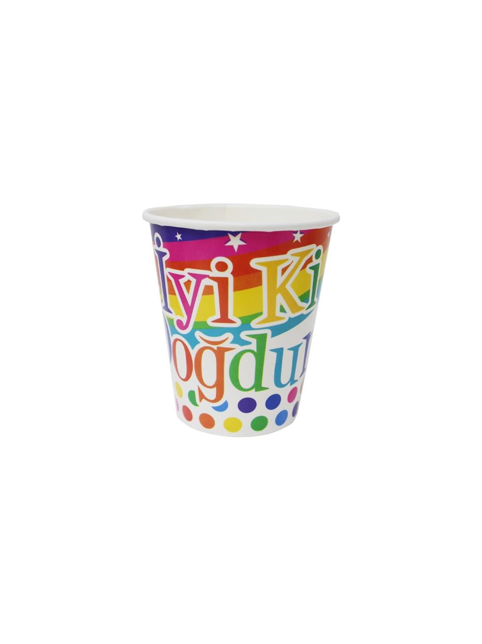 Canlı yeşil renkli tabak ve üzerinde “İyi Ki Doğdun” yazılı bardak ile konsept bütünlüğü sağlar.