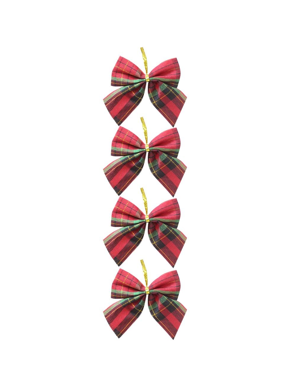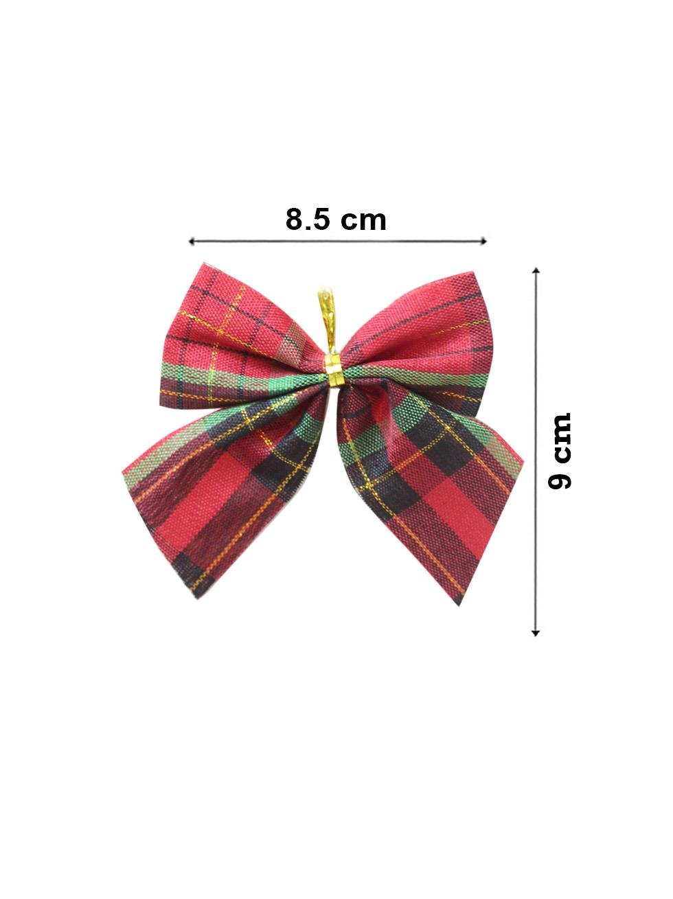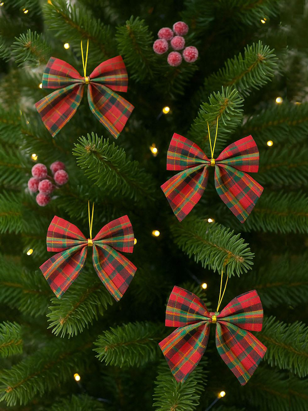 Yılbaşı Ağaç Süsü Dekoratif Ekose Kurdele Fiyonk Kırmızı Yeşil