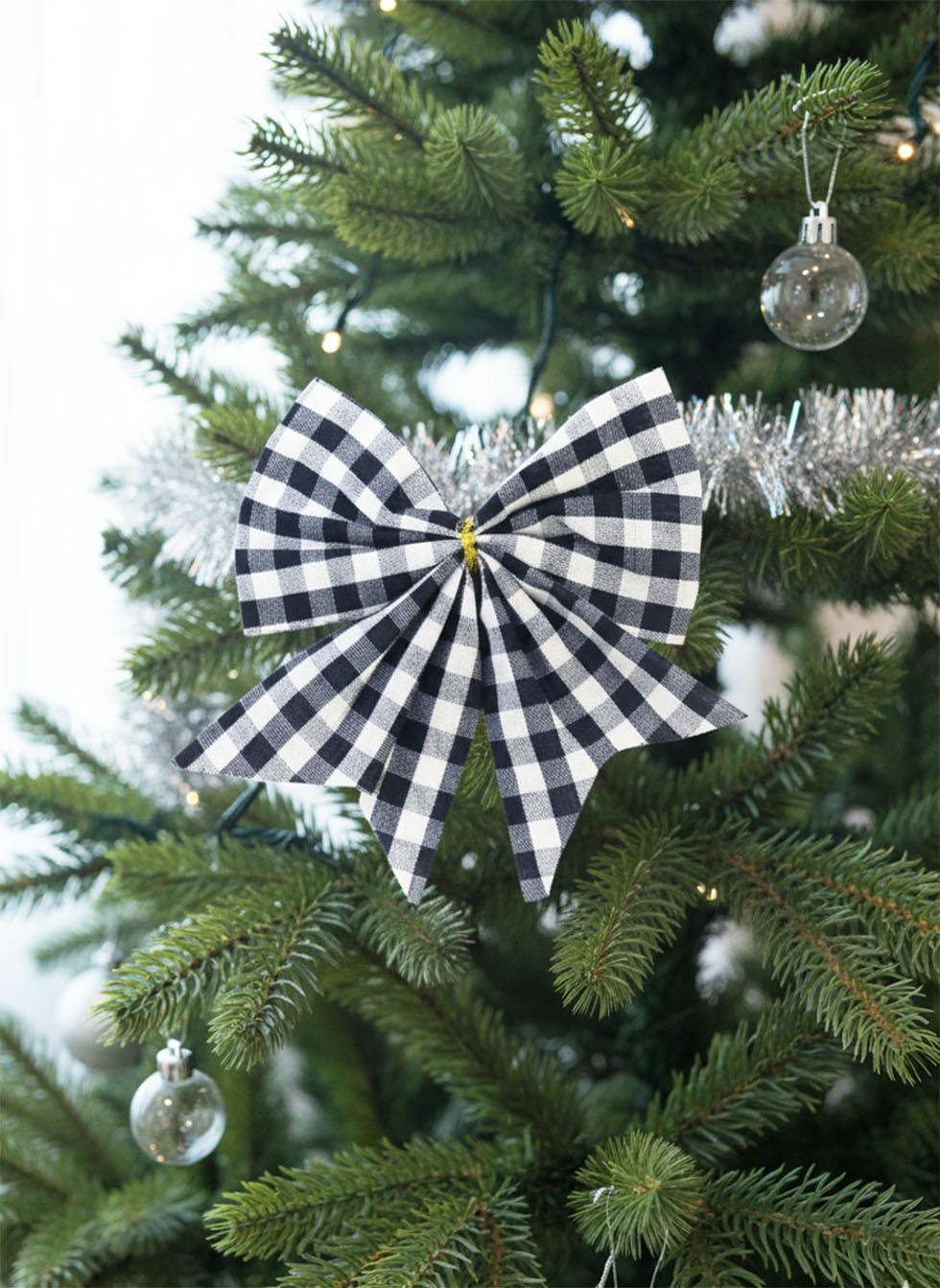 Yılbaşı Ağaç Süsü Fiyonk Pötikare Desen Asmalı Dekor Süsü Siyah Beyaz
