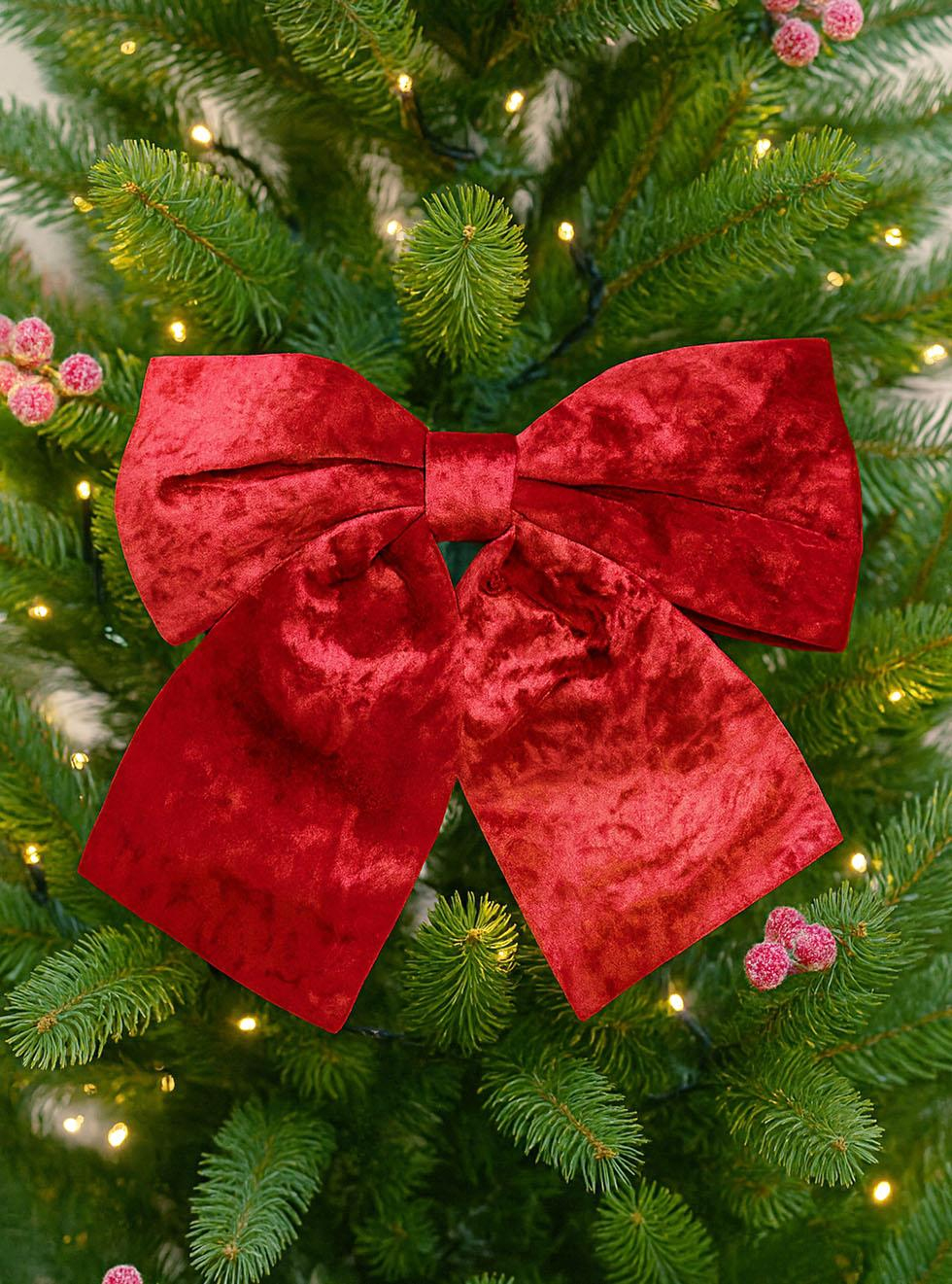Yılbaşı Ağaç Süsü Kadife Fiyonk Sünger Dolgulu Kurdele Dekor Süsü Kırmızı