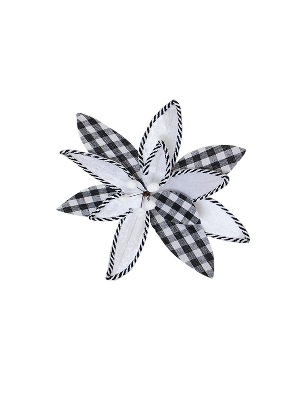 Siyah beyaz pötikare deseniyle modern ve rustik tarzı bir araya getiren bu yılbaşı çiçeği, ağacınıza özgün ve zarif bir dokunuş katar.
