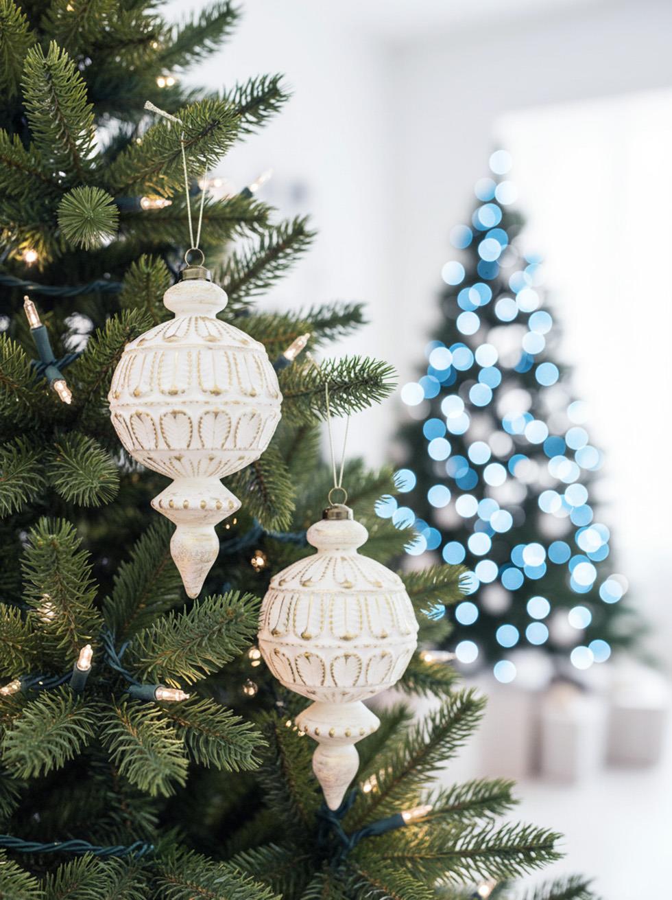 Retro Eskitme Beyaz Yılbaşı Ağaç Süsü, klasik yılbaşı dekorasyonlarına nostaljik bir hava katıyor. El işçiliğini andıran kabartma desenleri ve altın işlemeleriyle şık ve zarif bir görünüm sunar.