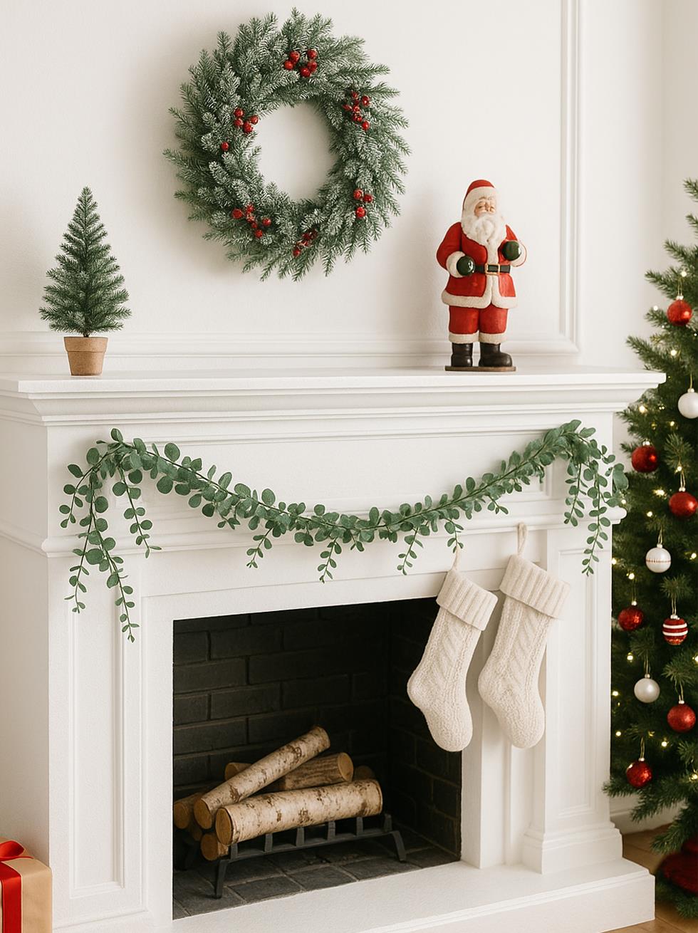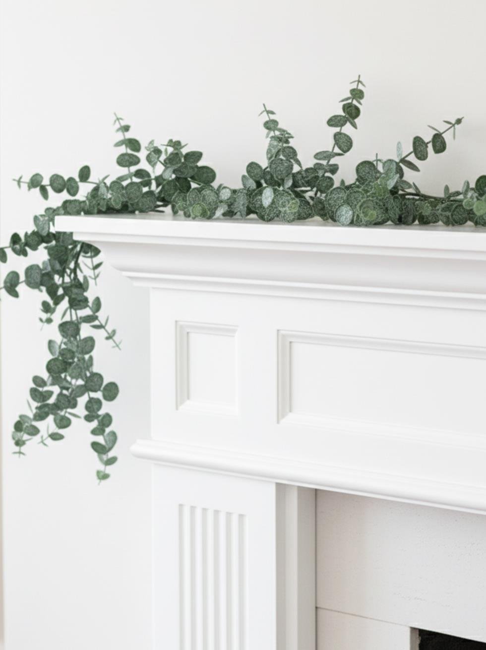 Yılbaşı okaliptus dalı garland dekoru, doğal görünümüyle ev dekorasyonunuza sıcak bir yılbaşı atmosferi kazandırır.