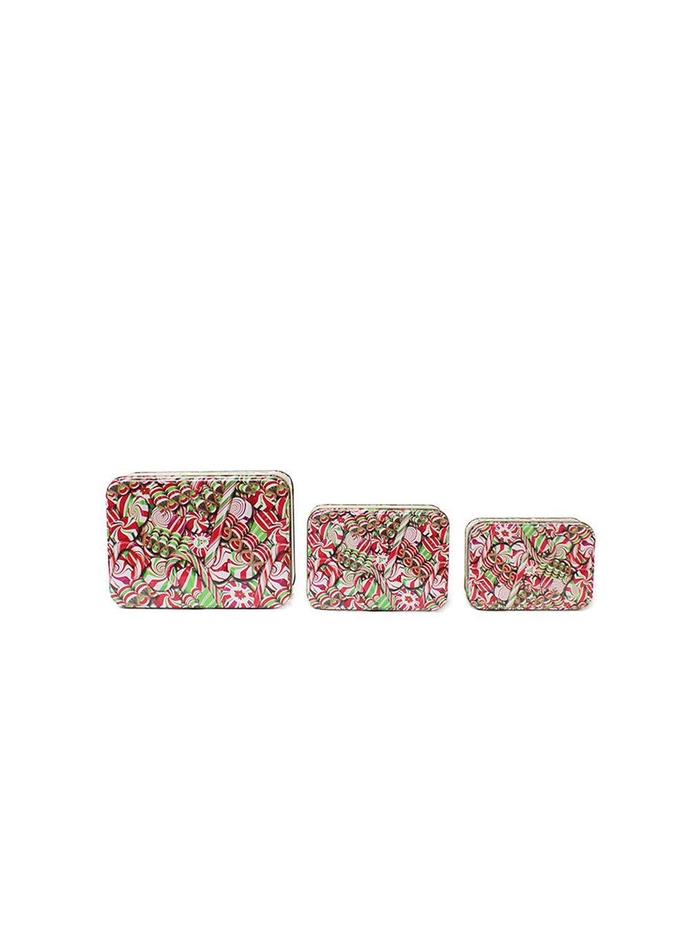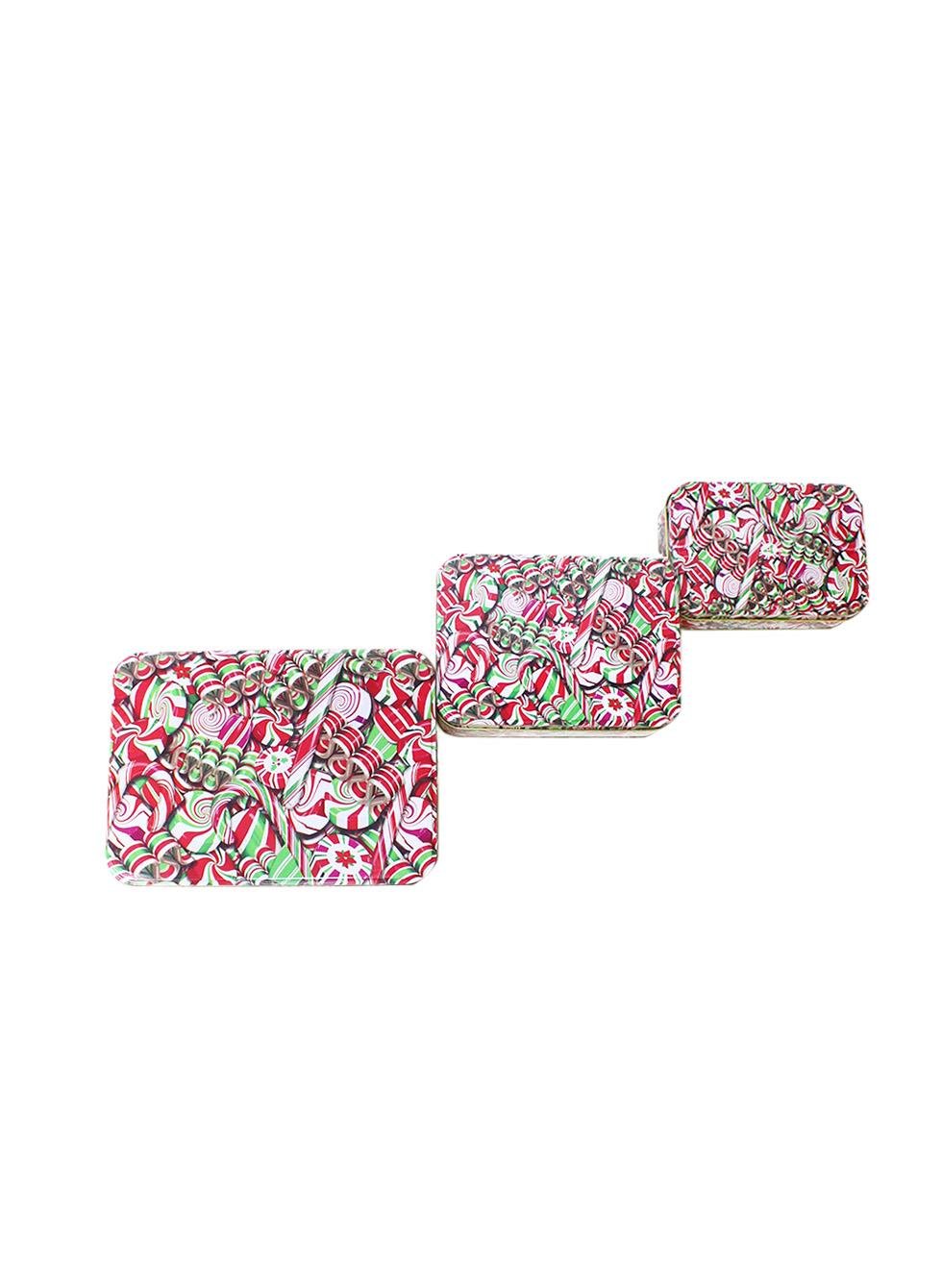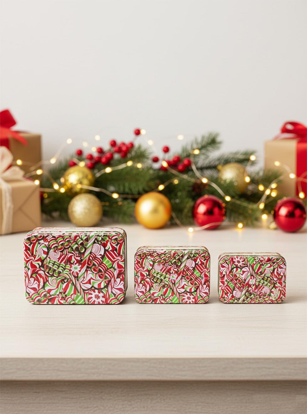 Yılbaşı Temalı Mini Teneke Kutu Seti Baston Şeker Desenli Kırmızı