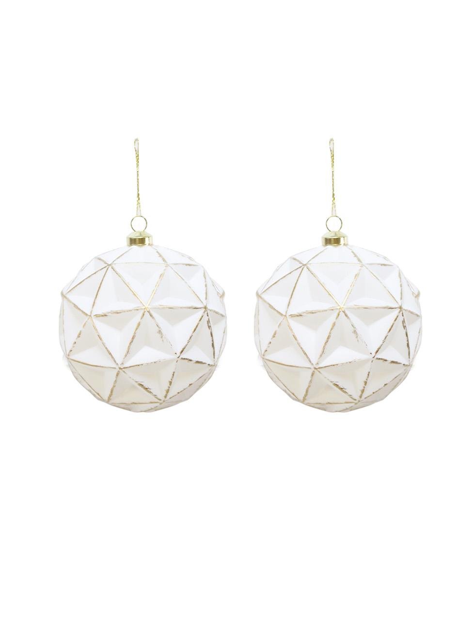 Yılbaşı Topu Geometrik Desenli Eskitme Detaylı Ağaç Süsü Beyaz