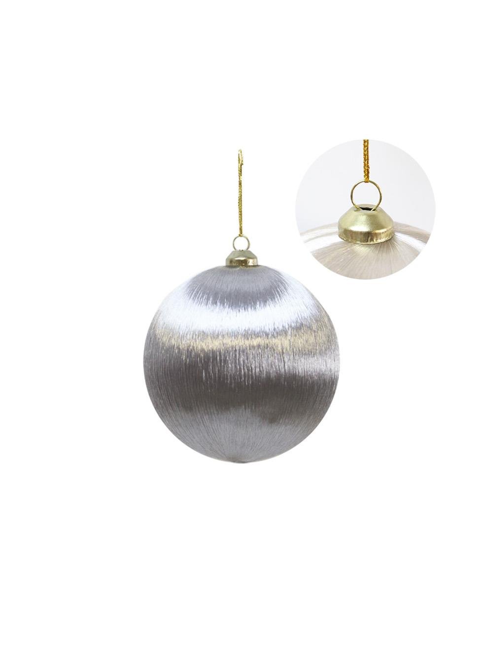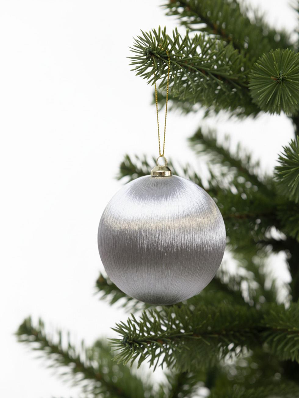 Şık tasarımıyla dikkat çeken gümüş yılbaşı topu, ipek ipliklerle sarılmış özel yüzeyi sayesinde ağacınıza zarif bir ışıltı katar. Yılbaşı süsü olarak çam ağacınızda ağacınıza modern ve sofistike bir görünüm kazandırır.