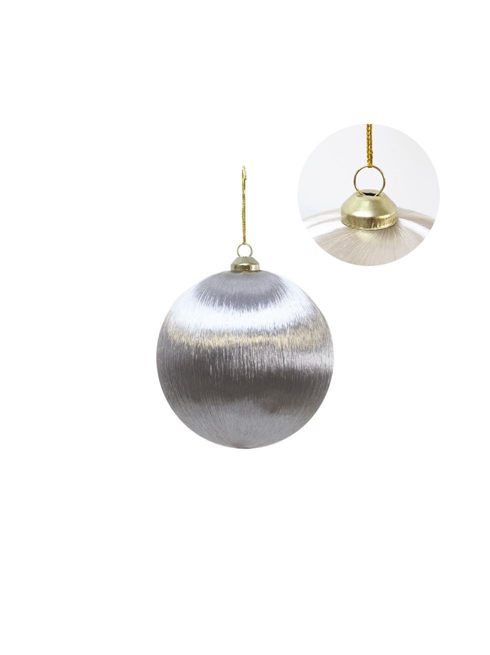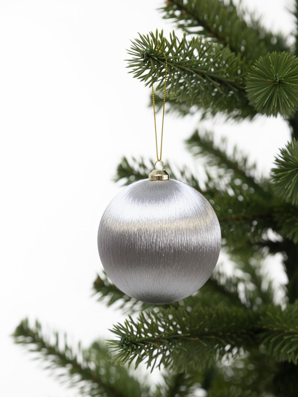 Şık tasarımıyla dikkat çeken gümüş yılbaşı topu, ipek ipliklerle sarılmış özel yüzeyi sayesinde ağacınıza zarif bir ışıltı katar. Yılbaşı süsü olarak çam ağacınızda ağacınıza modern ve sofistike bir görünüm kazandırır.