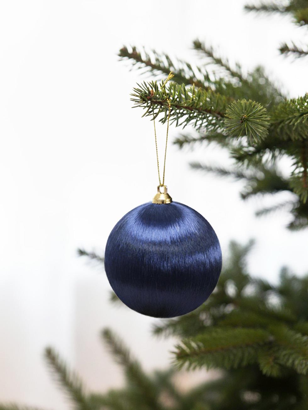 Yılbaşı Topu – İpek İplik Sarılı Çam Ağacı Süsü Lacivert