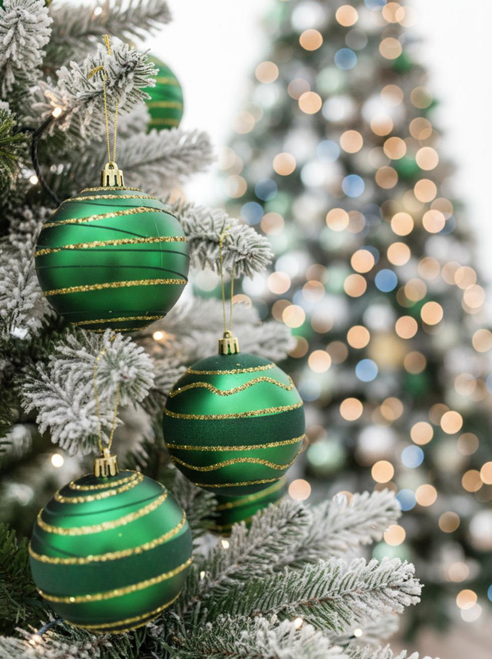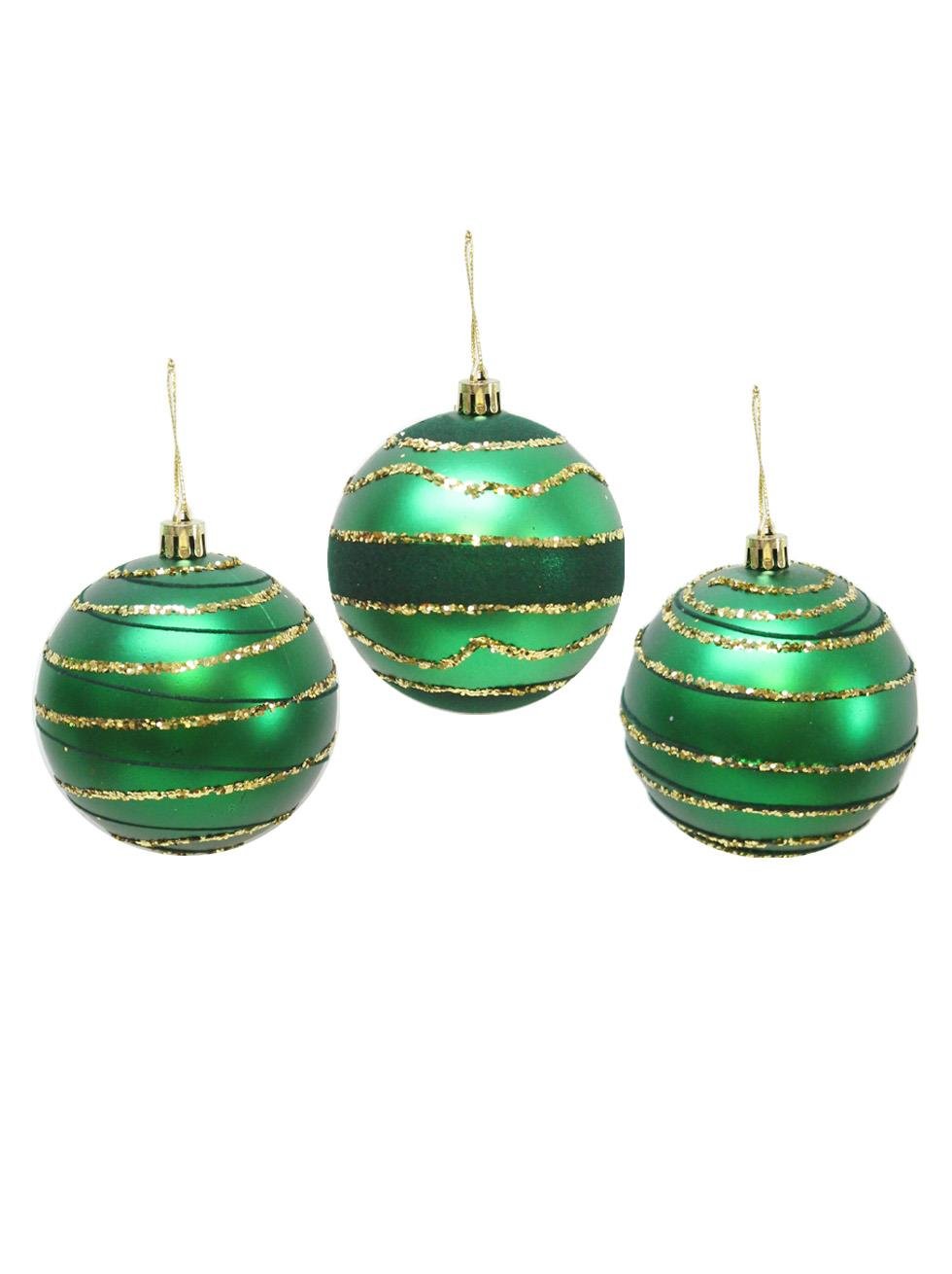 Yılbaşı Topu Altın Sim Çizgili – Çam Ağacı Süsü Yeşil